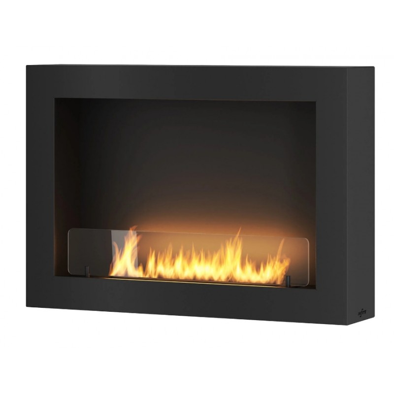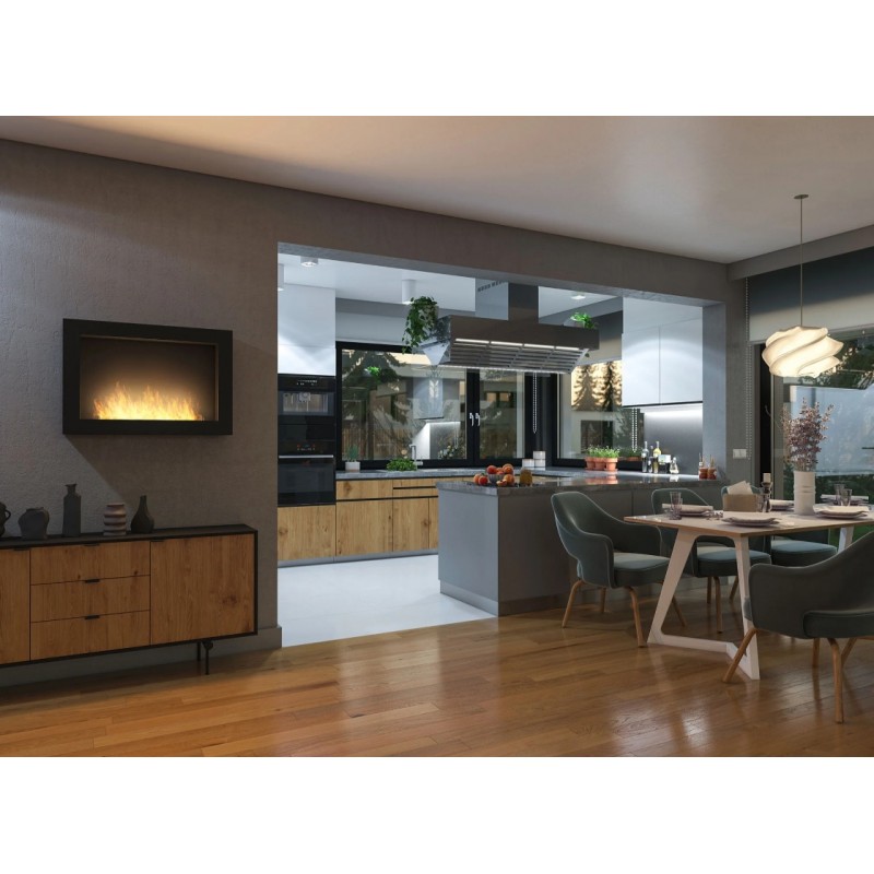 Naścienny biokominek Murall 80cm czarny z szeroką linią ognia. Wiszący biokominek polskiej produkcji z bezpiecznym palnikiem.