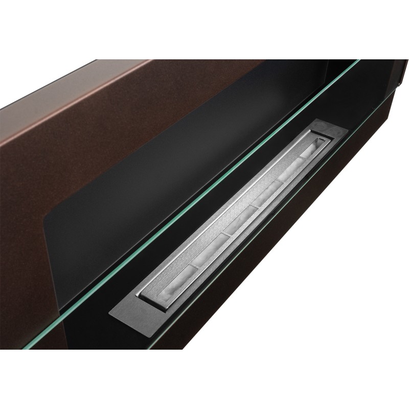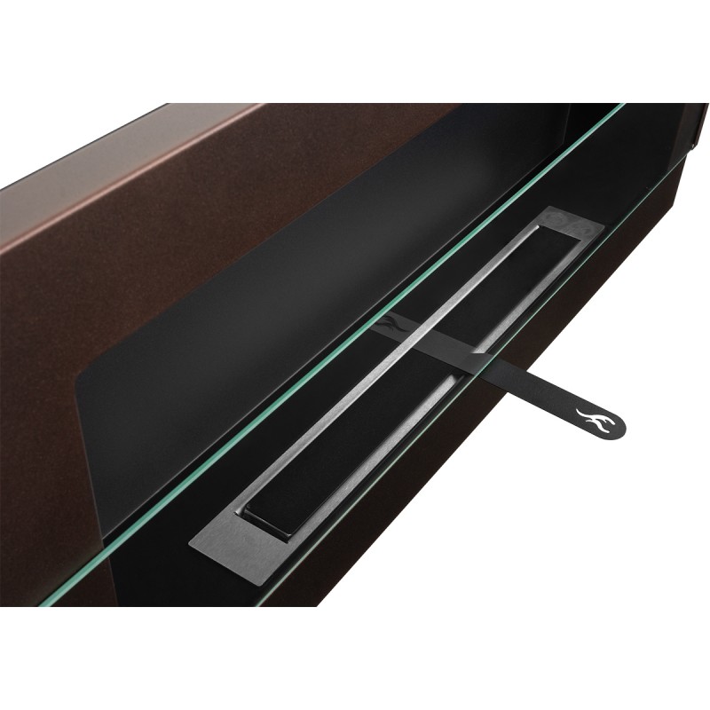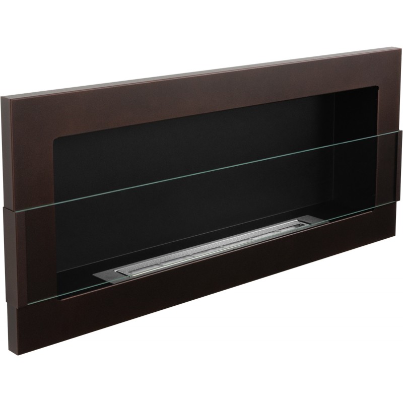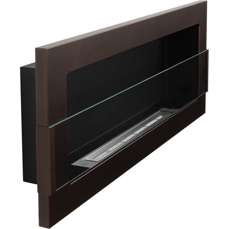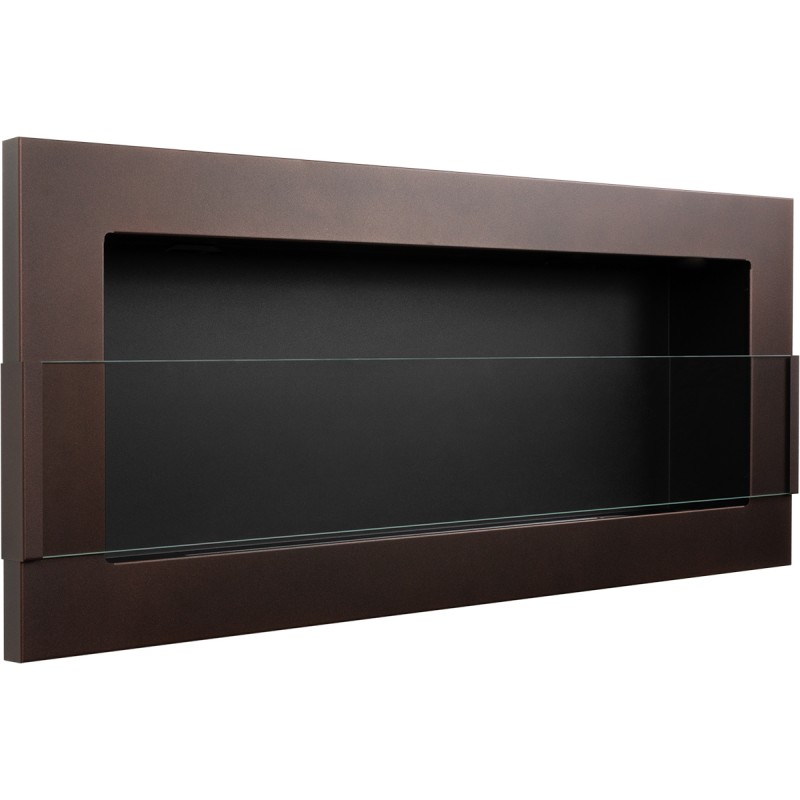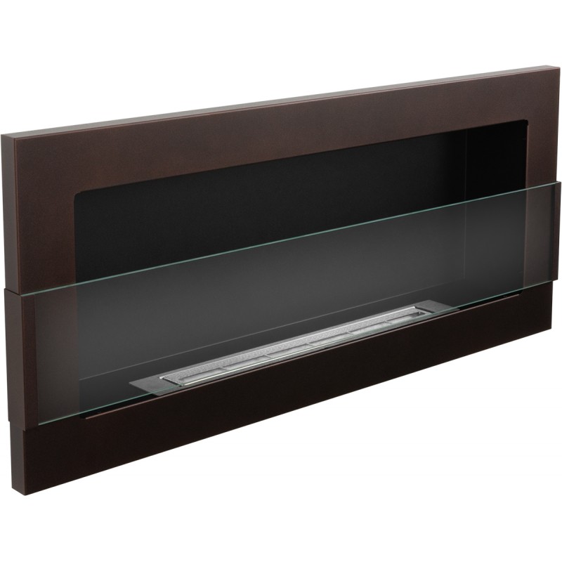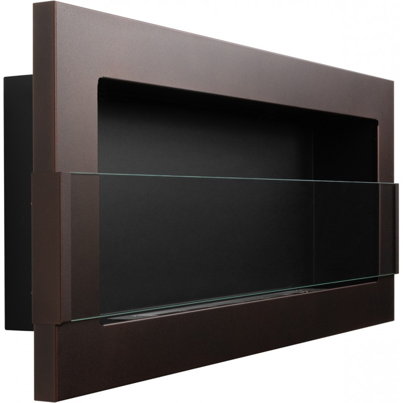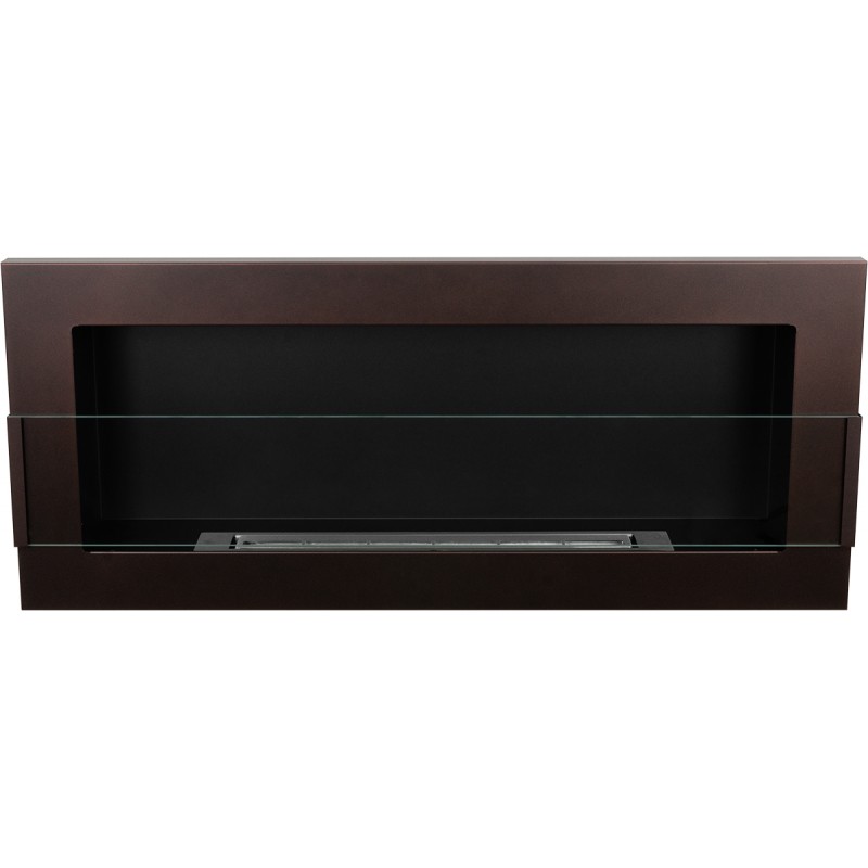Biokominek brązowy o rozmiarze 90x40cm z szybą ochronną z serii Nice-House do zawieszenia na ścianie lub do zabudowy z certyfikatem bezpieczeństwa TüV.