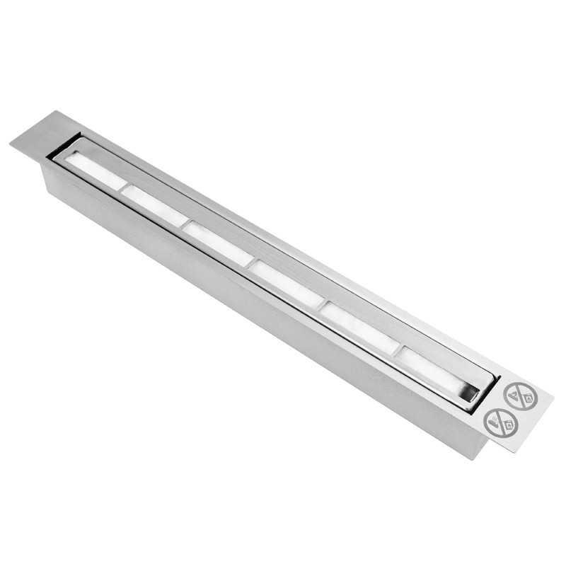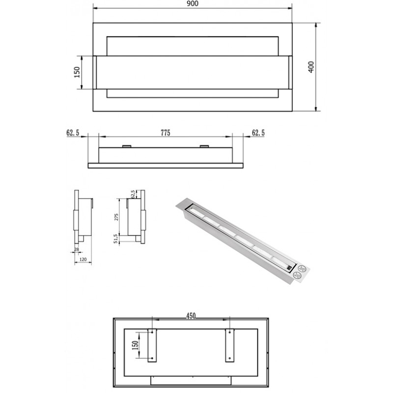 Palenisko liniowe w postaci jednego pojemnika o szerokości 524 mm, z podwójnymi ścianami oraz dnem. Wykonane ze stali nierdzewnej o pojemności około 0,75 litra. Biopaliwo spali się realnie w czasie około 1h 50min na w pełni zalanym palniku (przestrzegamy przed fikcyjnymi czasami na poziomie 4 czy nawet 9 godzin).