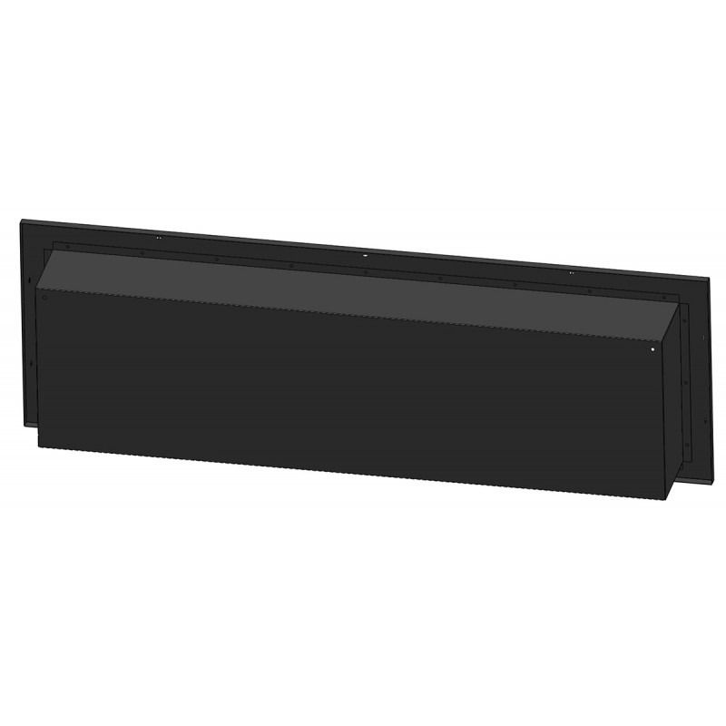 Biokominek poziomy, wiszący, rama frontową i korpus wykonane ze stali lakierowanej farbą termoodporną w kolorze czarny mat. Na odwrocie biokominka umieszczono specjalne otwory do zawieszenia na ścianie lub zabudowania. W zestawie są kołki rozporowe umożliwiające zawieszenie biokominka.