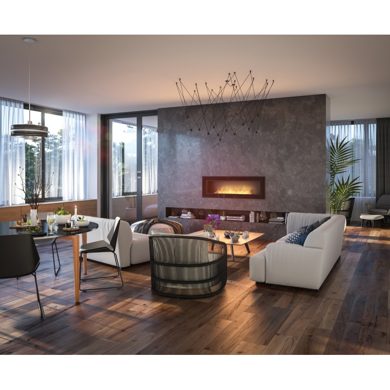 Biokominek Frame to połączenie stali nierdzewnej oraz stali malowanej proszkowo. Model można dowolnie zawieszać na ścianie lub zabudować w ścianie, także z płyty gipsowo-kartonowej, lecz najlepiej w wersji ogniotrwałej. Frontowa rama podkreśla design wnętrza. Nadaje się zarówno do wnętrz nowoczesnych jak i klasycznych.