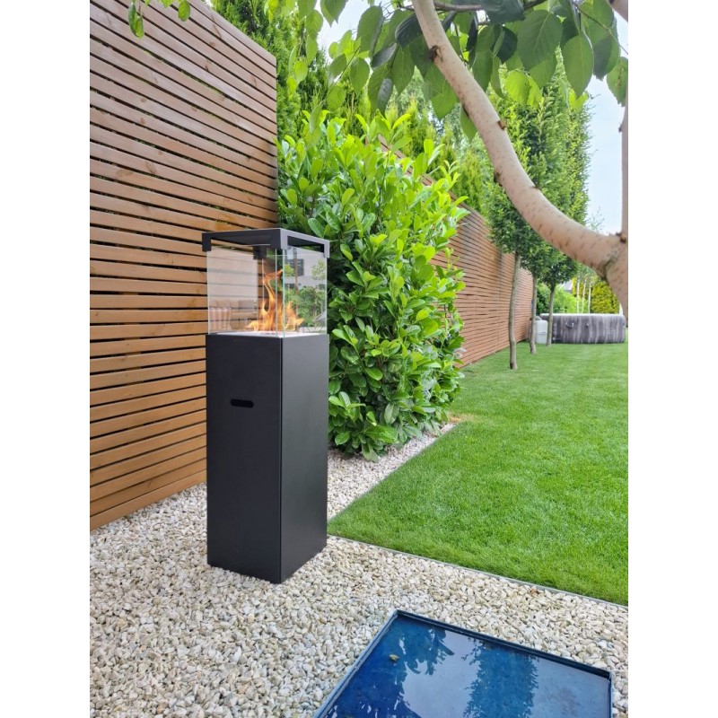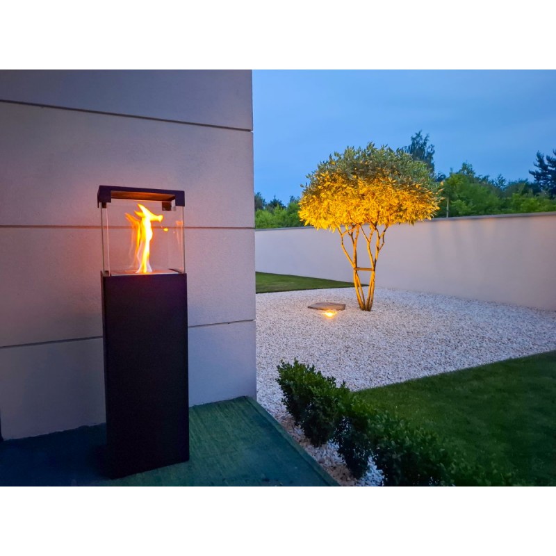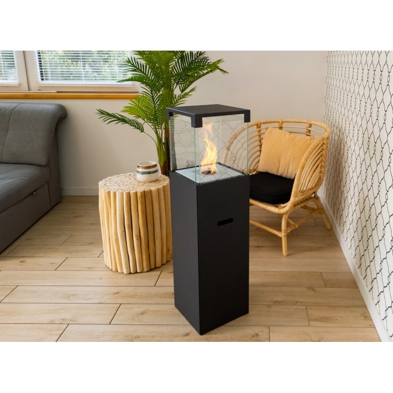 Biokominek czarny Patio wolnostojący z szybami. Biokominkowy ogrzewacz.