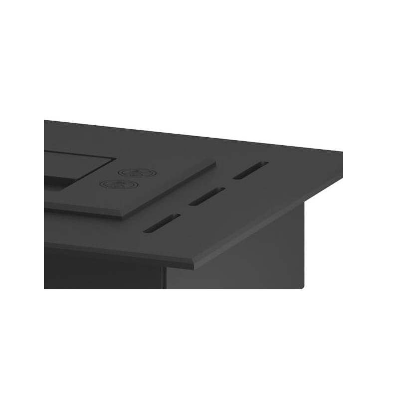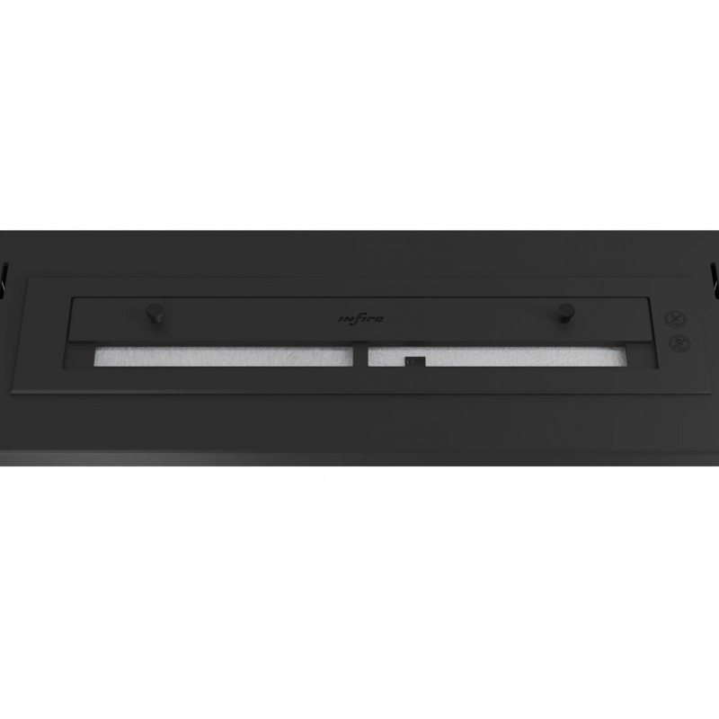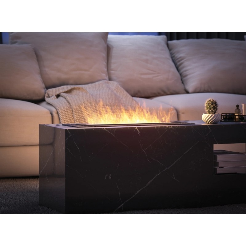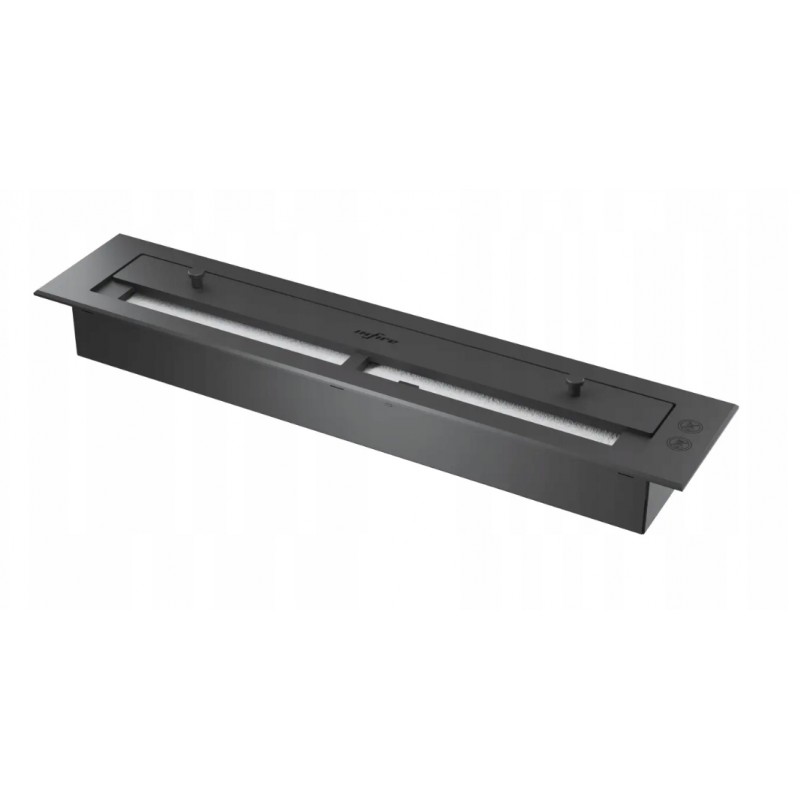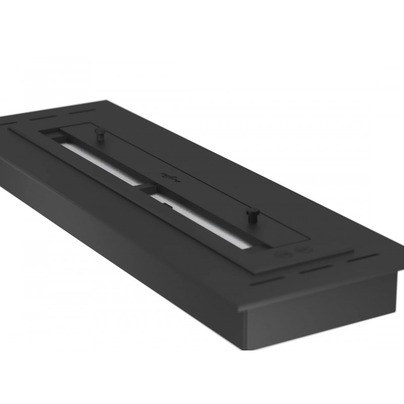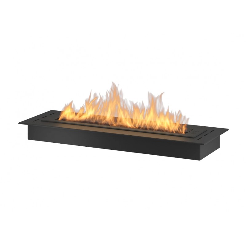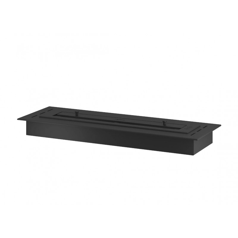 Biokominek / wkład do zabudowy Inbox 600mm wykonany ze stali lakierowanej w kolorze czarnym z czarnym palnikiem.